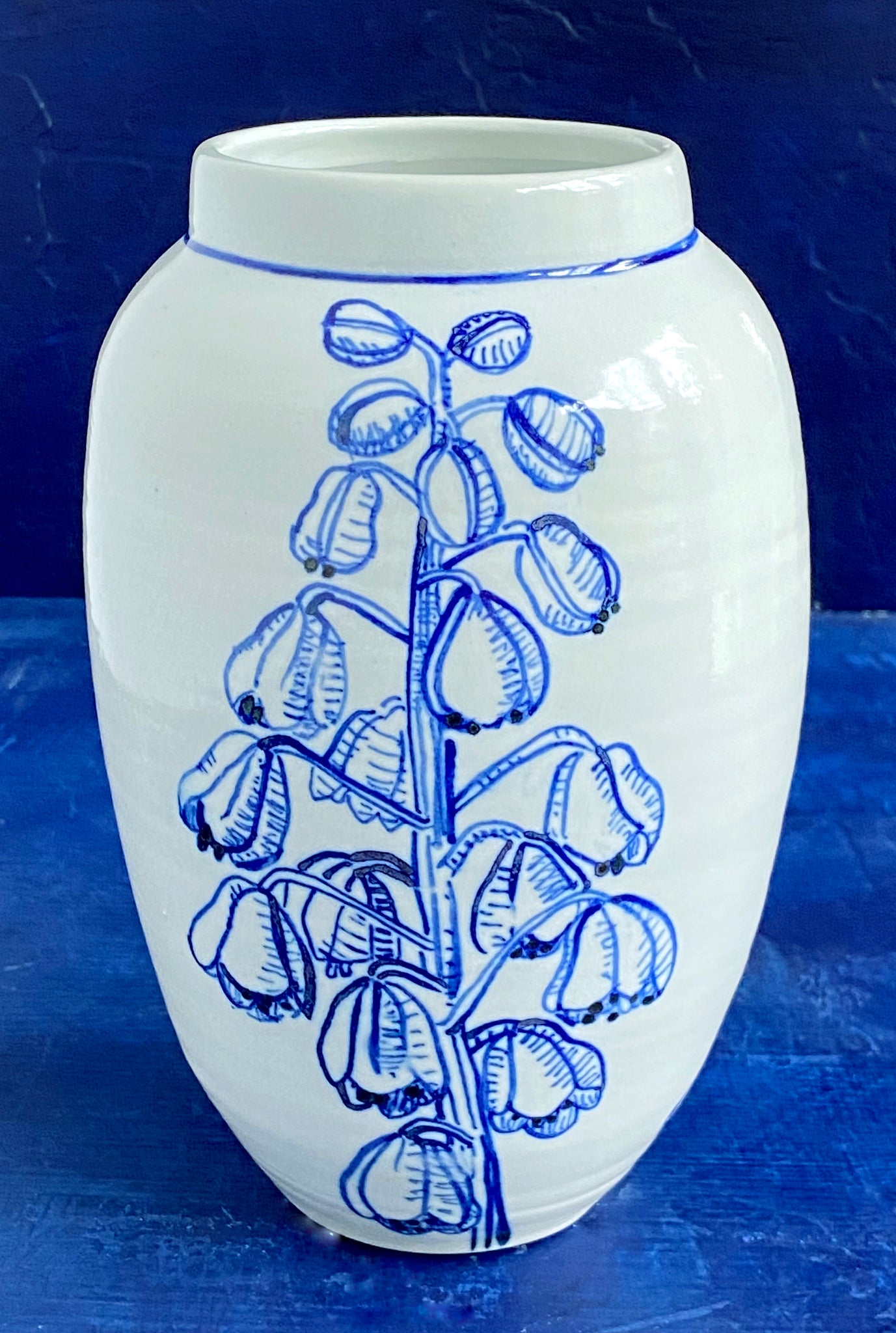 English porcelain fritillaria persica vase with bug