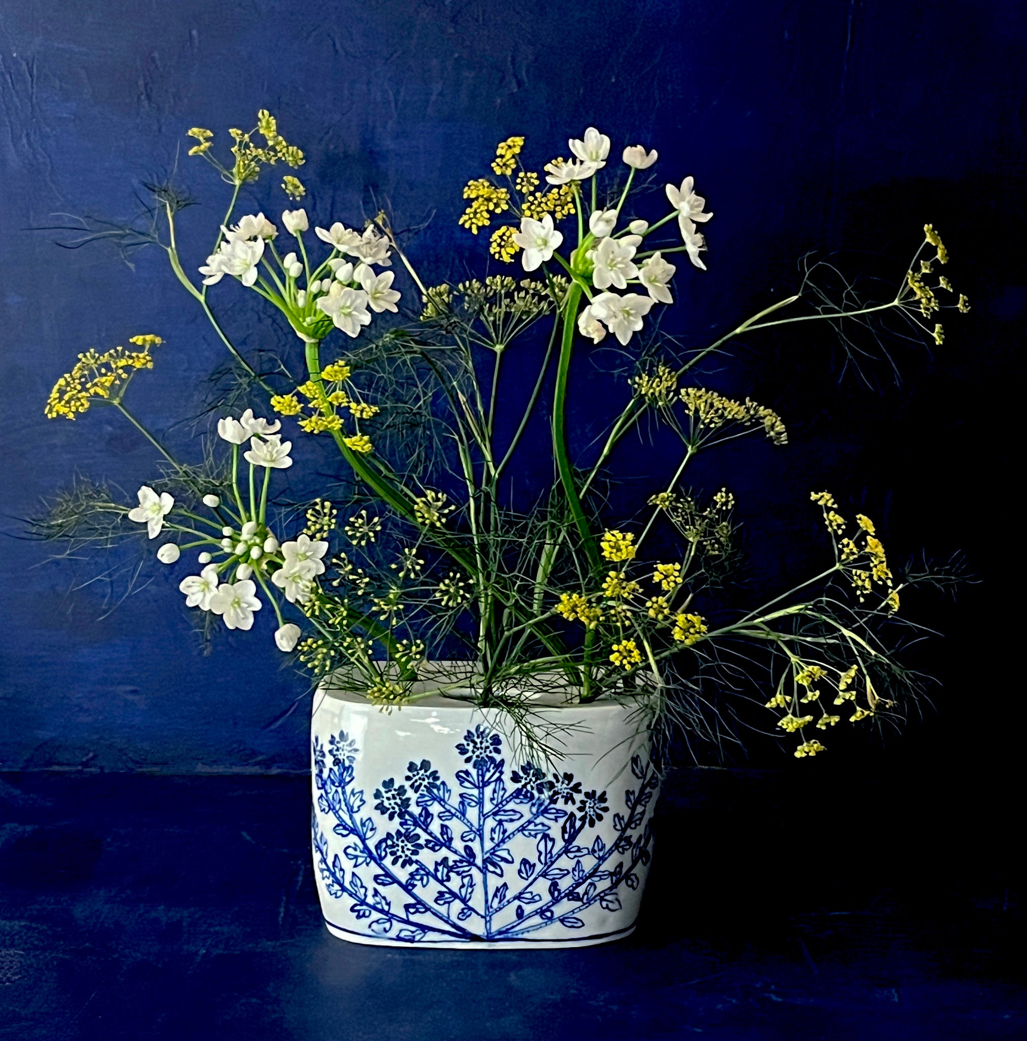 English porcelain large scabiosa flower brick, 5.5” x 4”